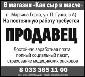 В магазин «Как сыр в масле» требуется продавец