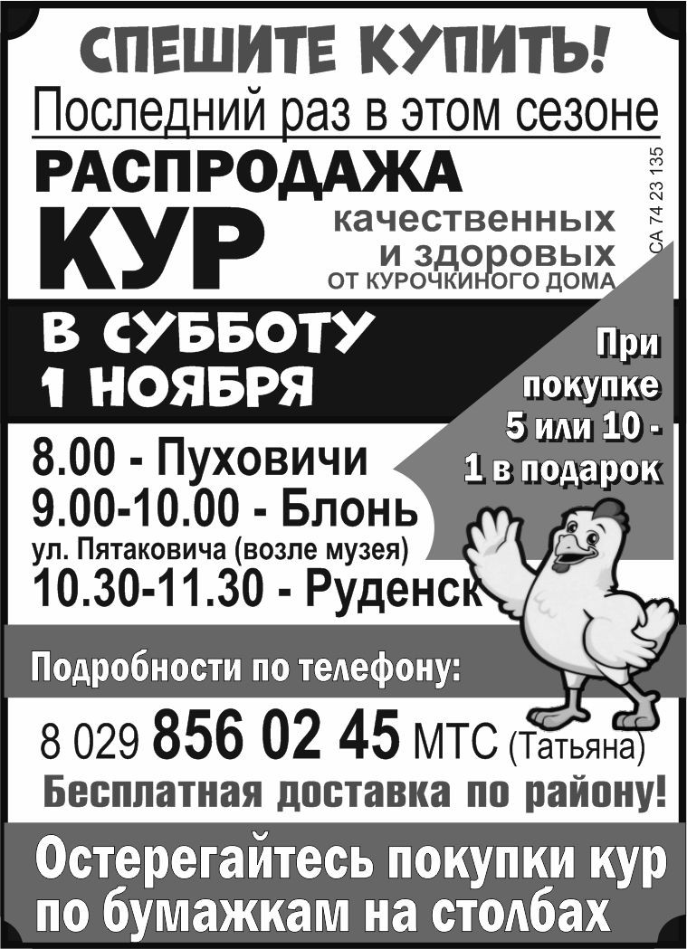 (Остерегайтесь покупки кур по бумажкам на столбах )