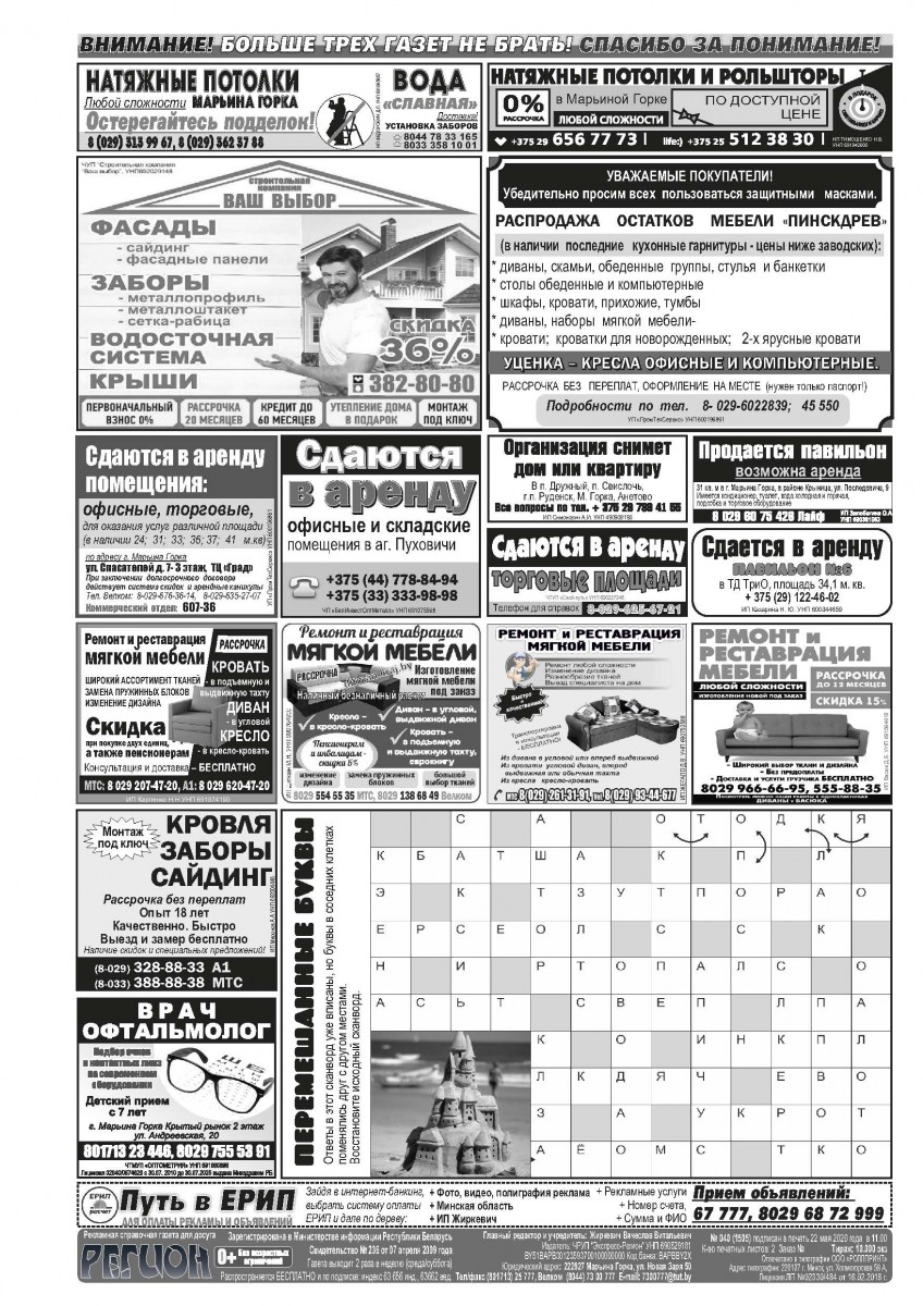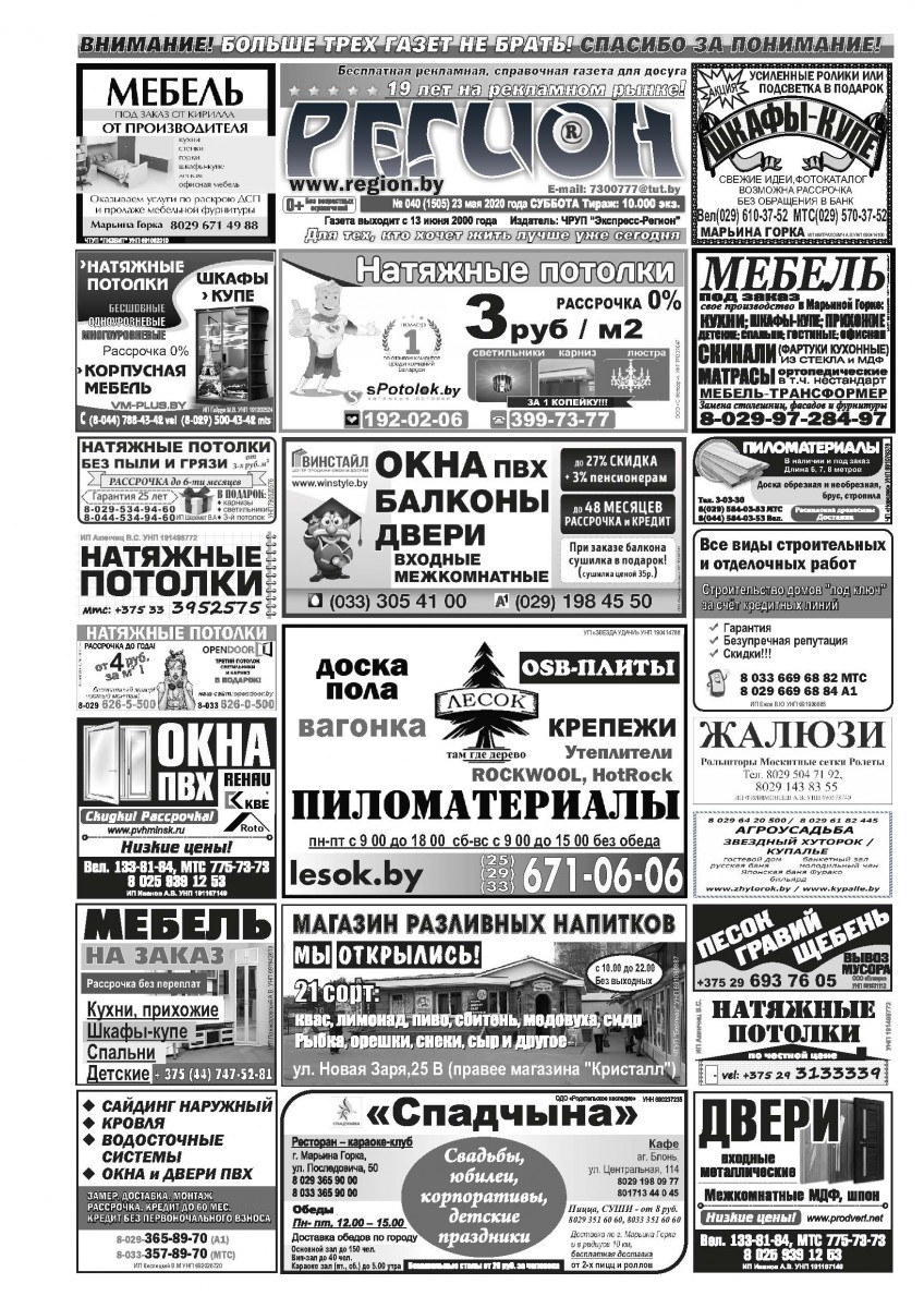 Газета «Регион» № 40 от 23 мая 2020 года