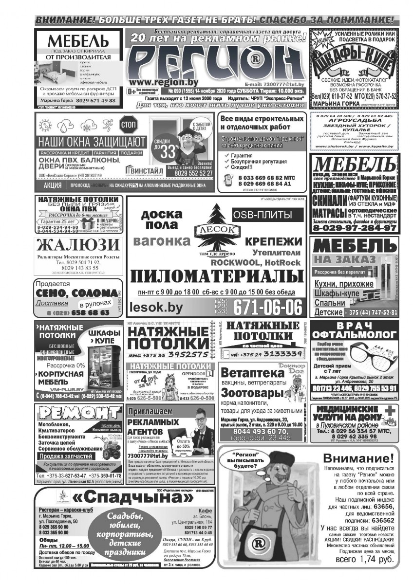 Газета «Регион» № 90 от 14 ноября 2020 года