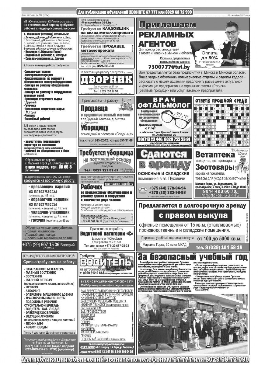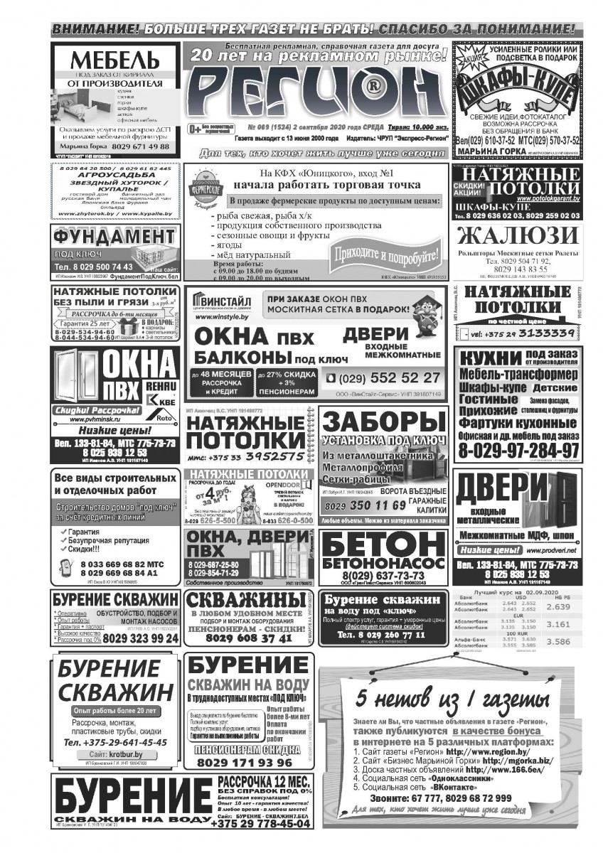 Газета «Регион» № 69 от 2 сентября 2020 года