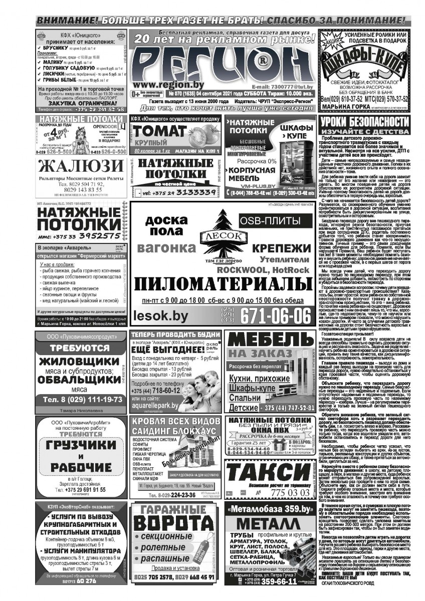 Газета «Регион» № 70 от 4 сентября 2021 года