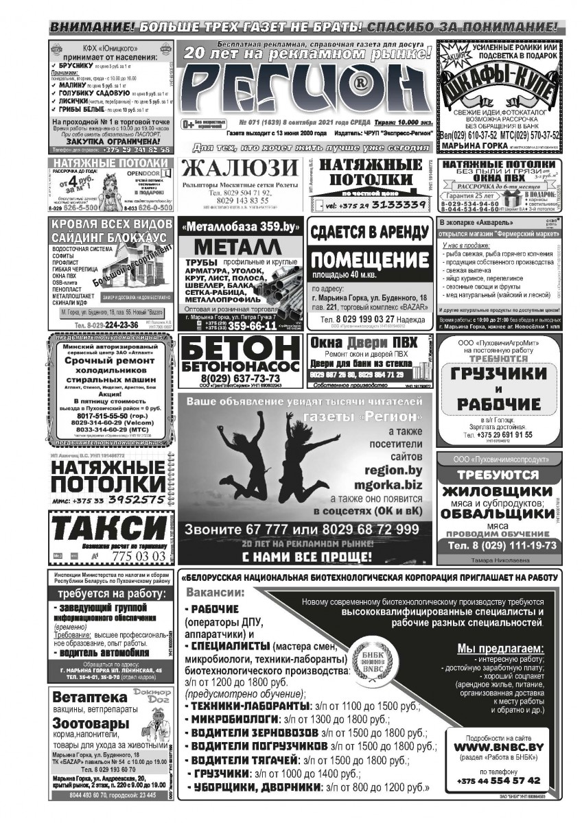 Газета «Регион» № 71 от 8 сентября 2021 года