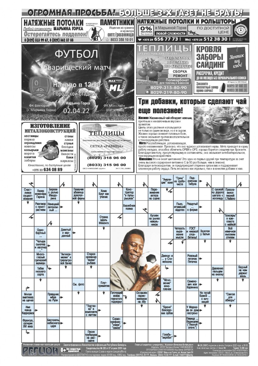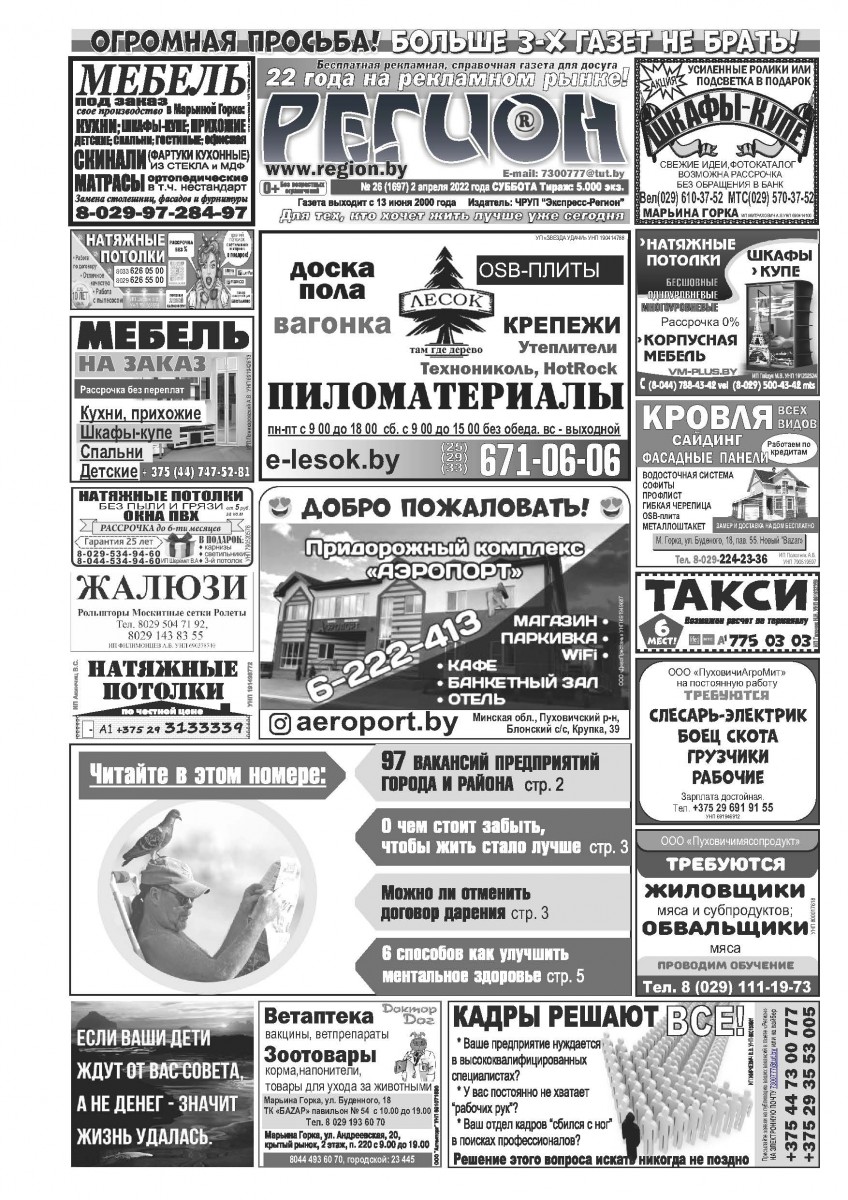 Газета «Регион» № 26 от 2 апреля 2022 года