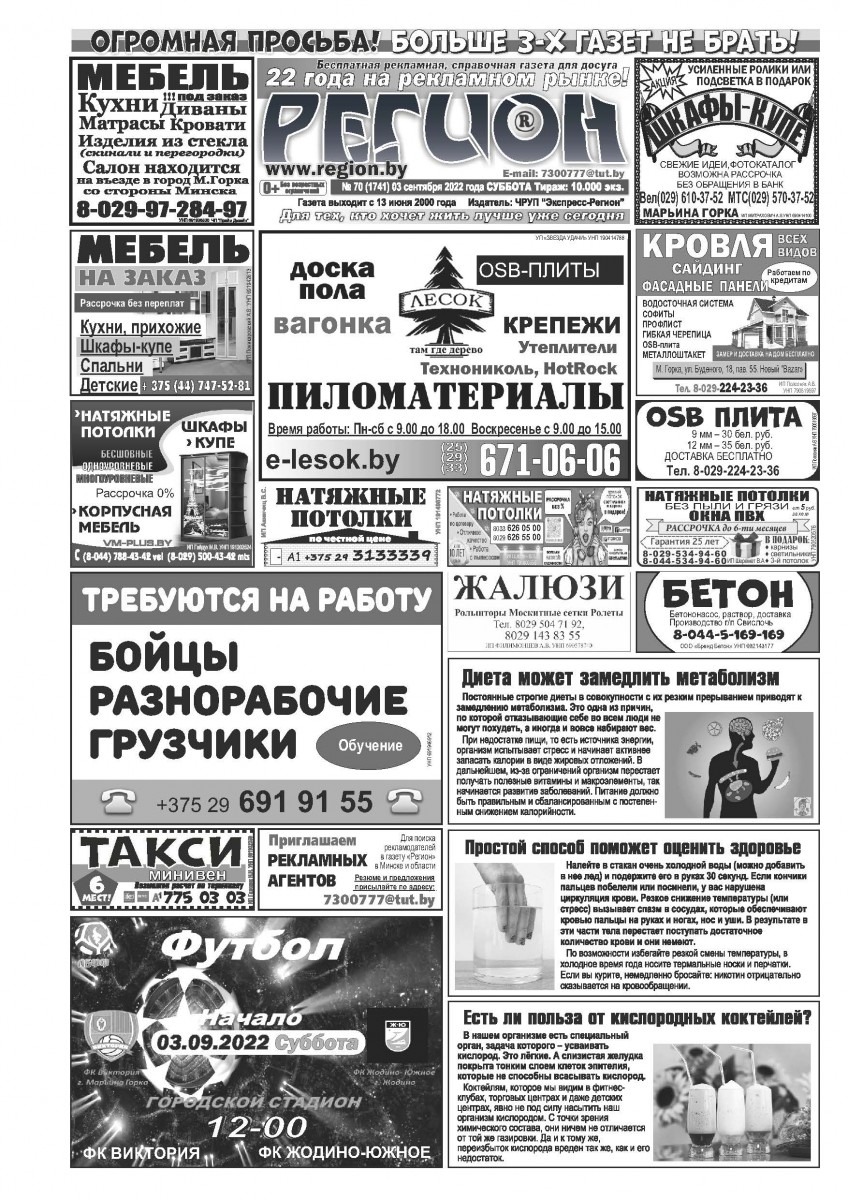 Газета "Регион" № 70 от 3 сентября 2022 года