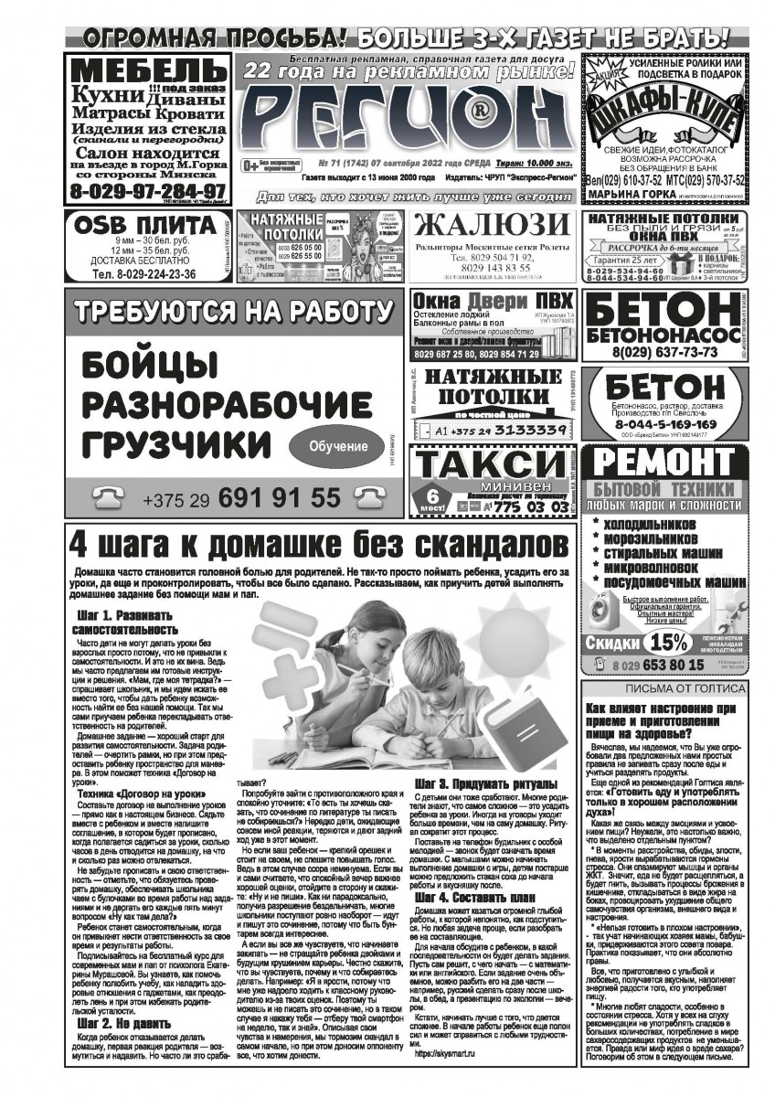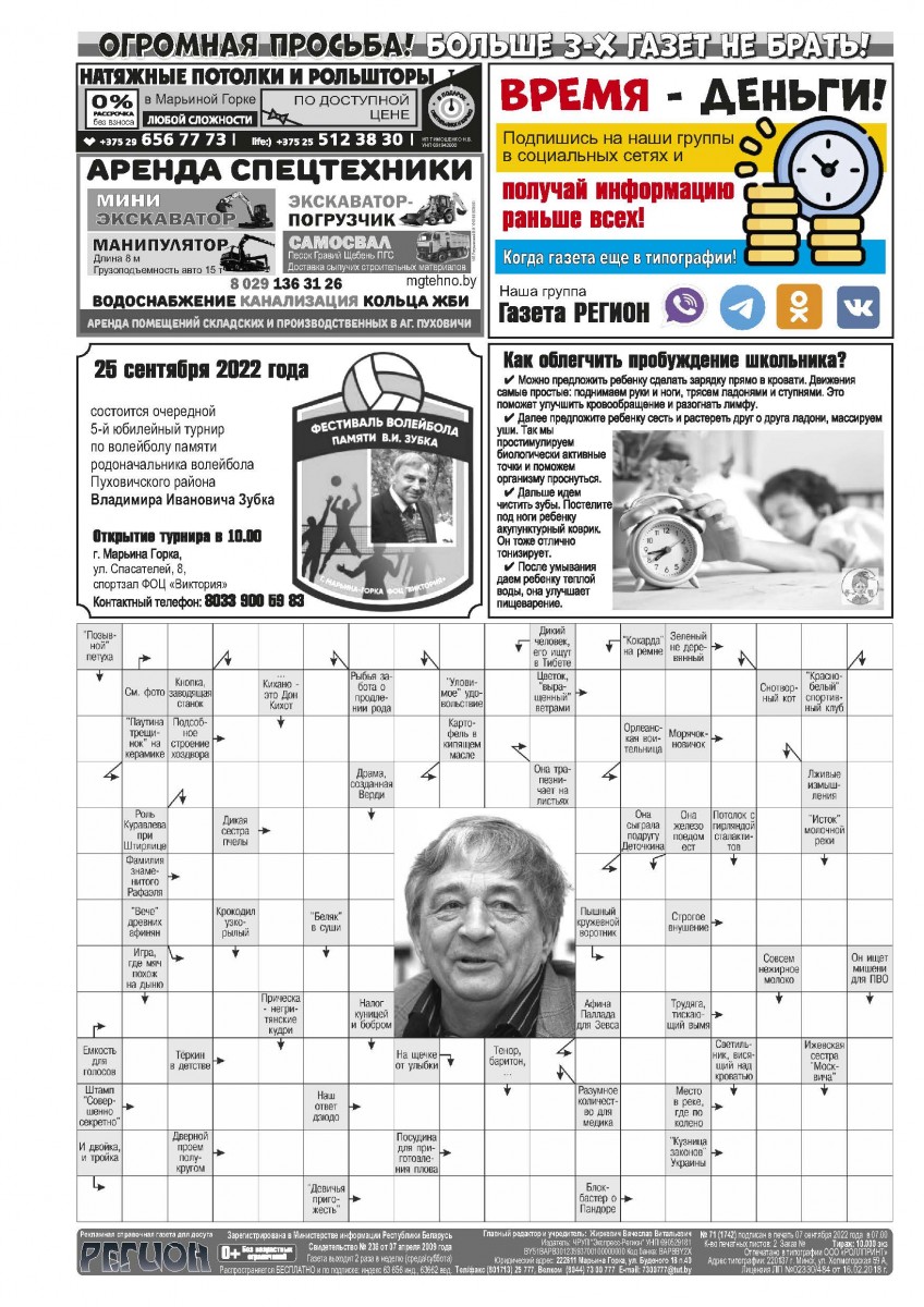 Газета "Регион" № 71 от 7 сентября 2022 года