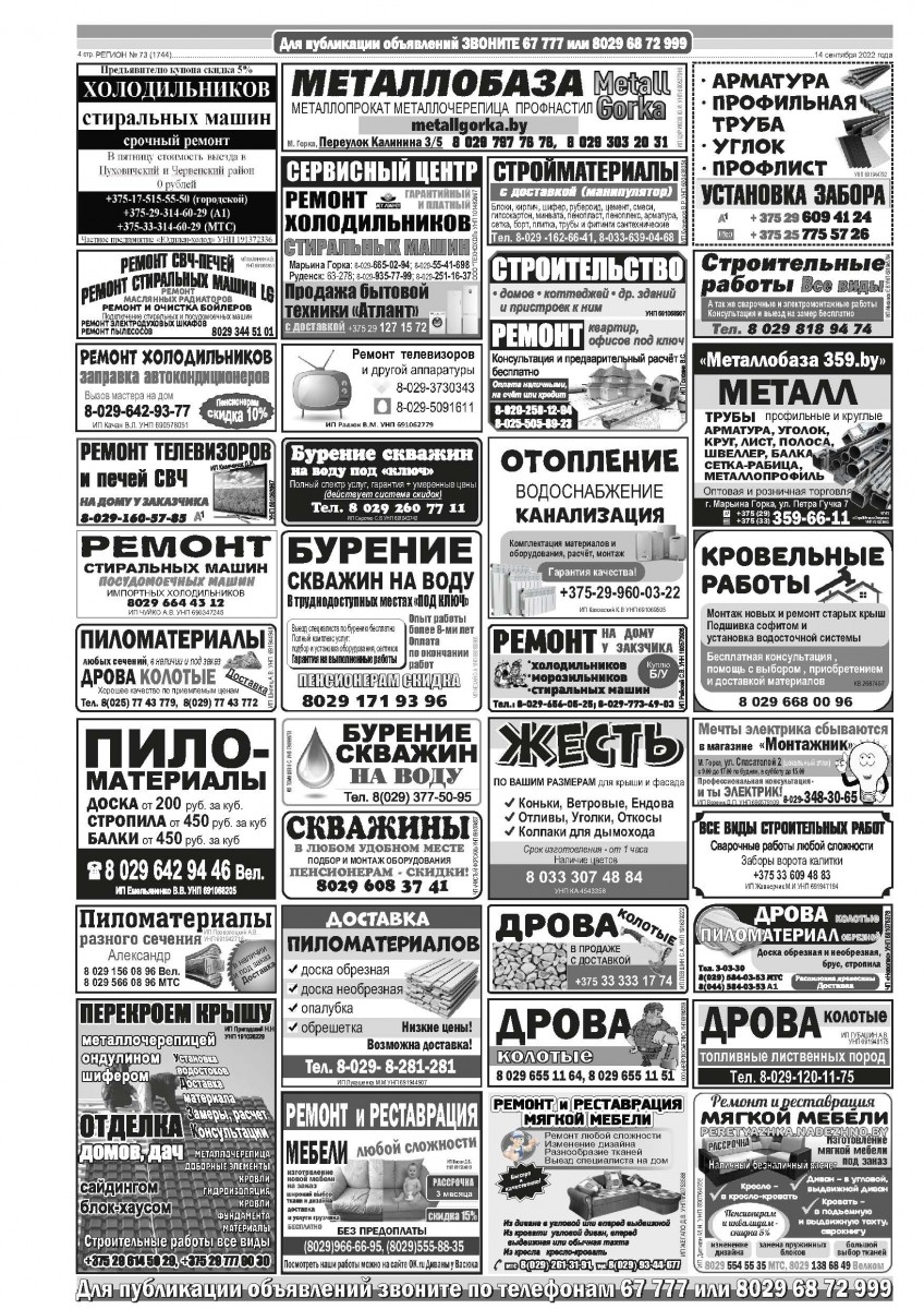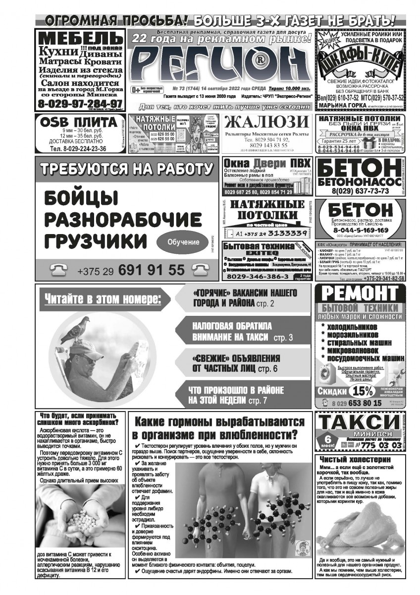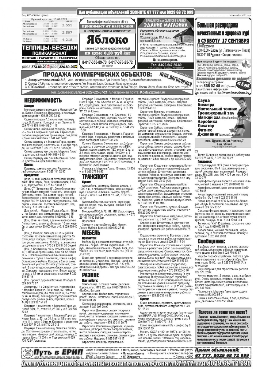 Газета "Регион" № 73 от 14 сентября 2022 года