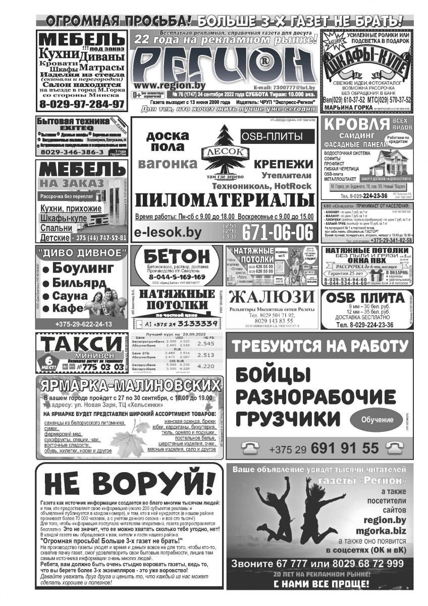 Газета «Регион» № 76 от 24 cентября 2022 года