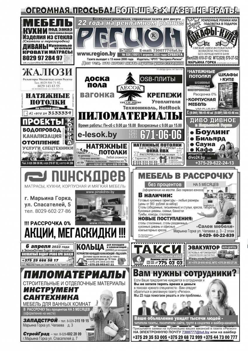 Газета «Регион» № 26 от 1 апреля 2023 года