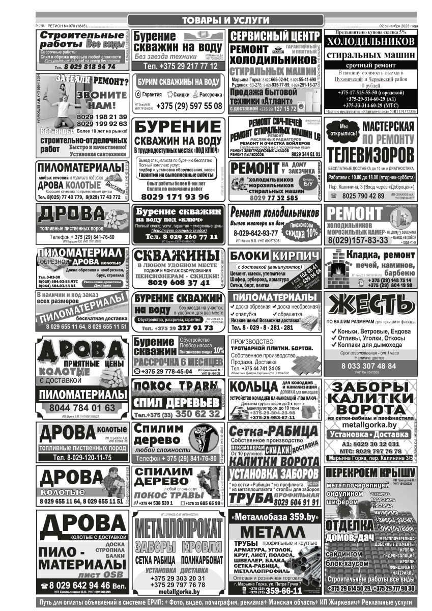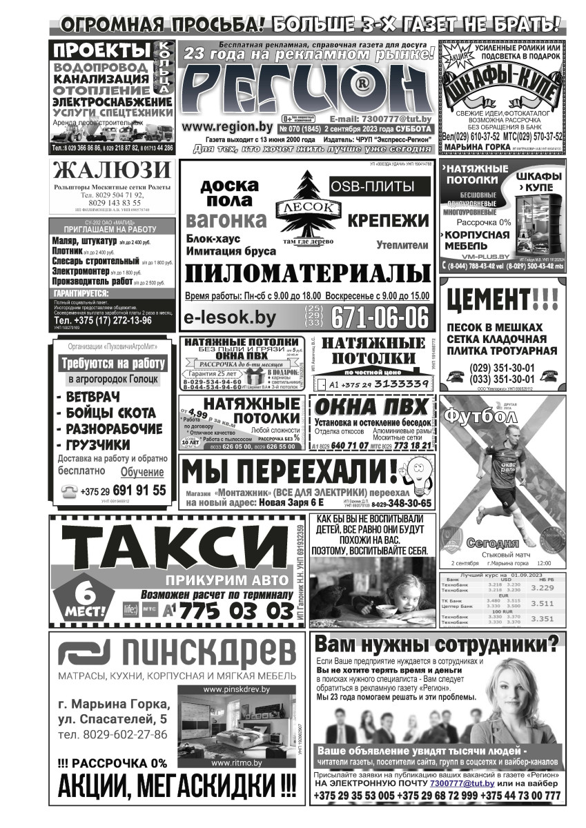 Газета «Регион» № 70 от 2 сентября 2023 года