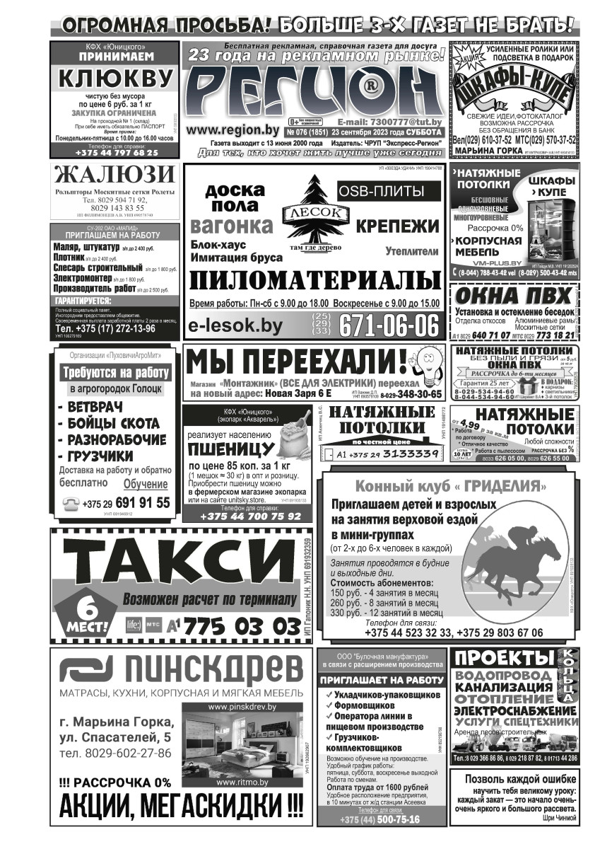 Газета «Регион» № 76 от 23 сентября 2023 года