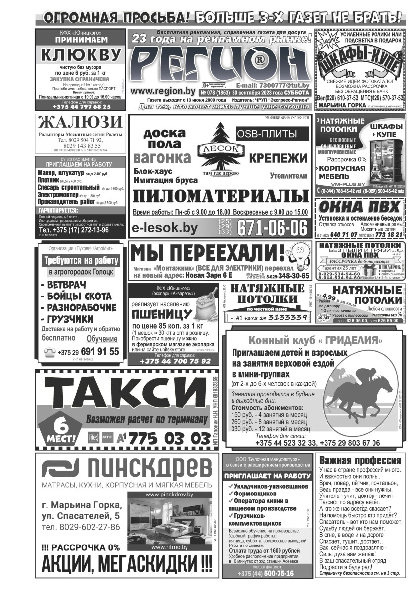Газета «Регион» № 78 от 30 сентября 2023 года