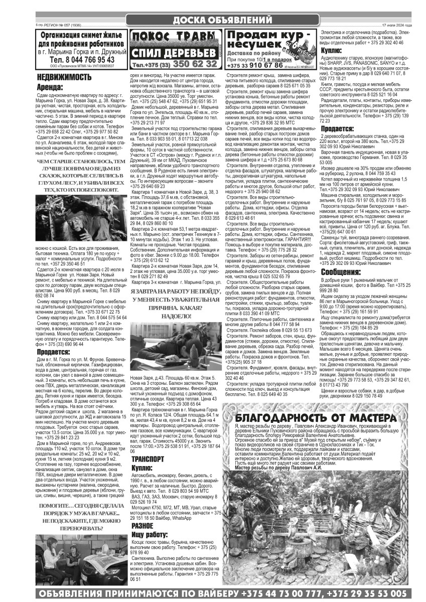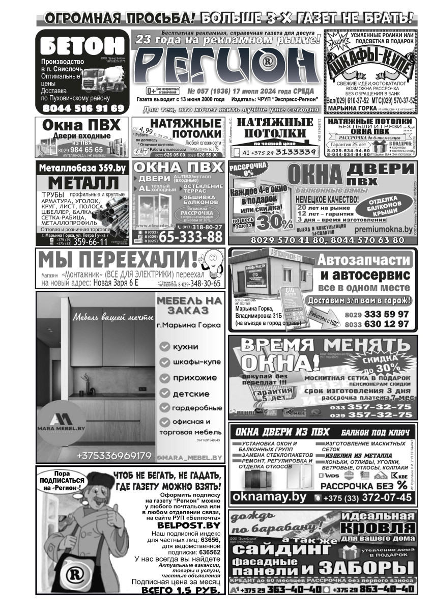 Газета «Регион» № 57 от 17 июля 2024 года