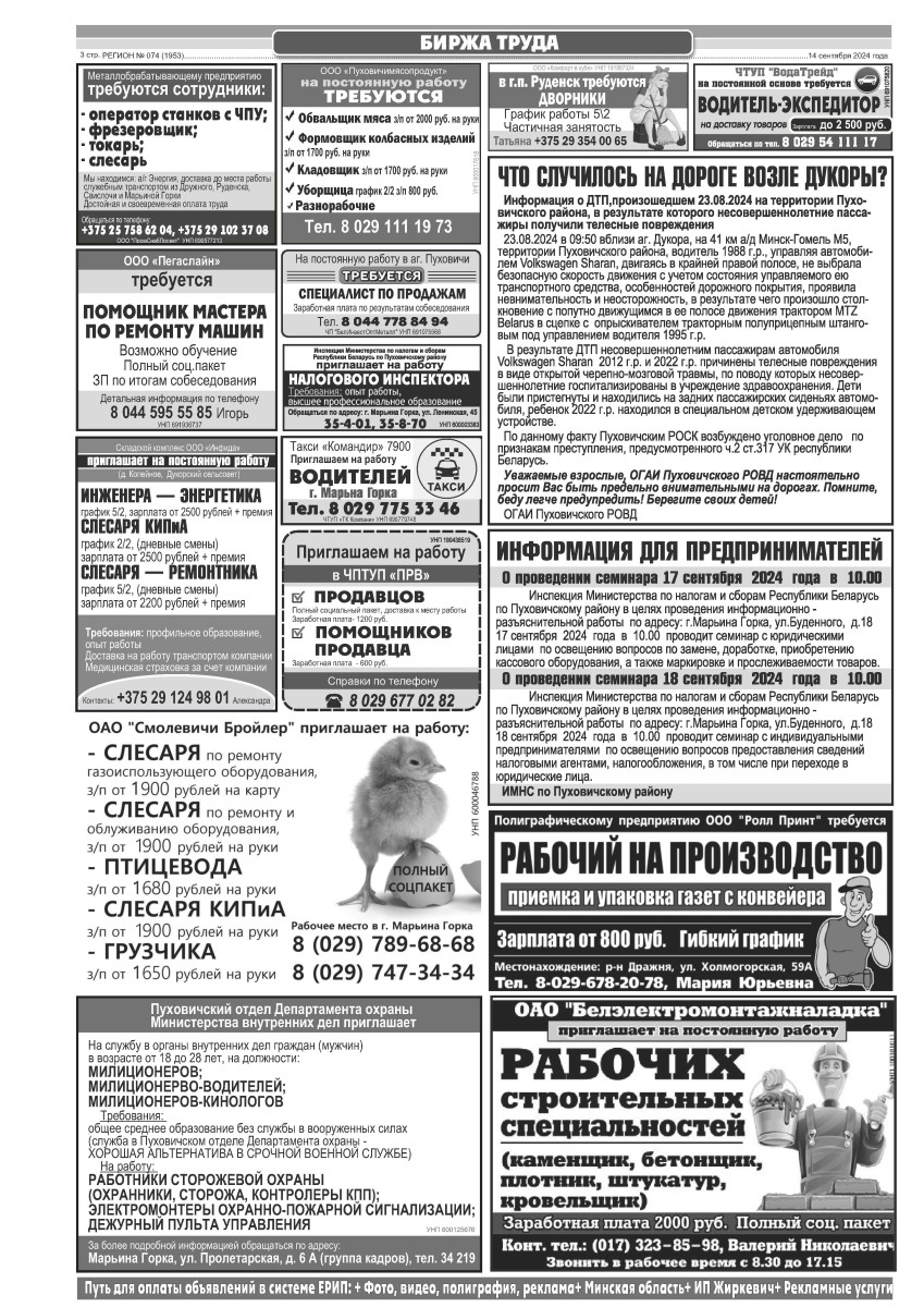 Газета «Регион» № 74 от 14 сентября 2024 года