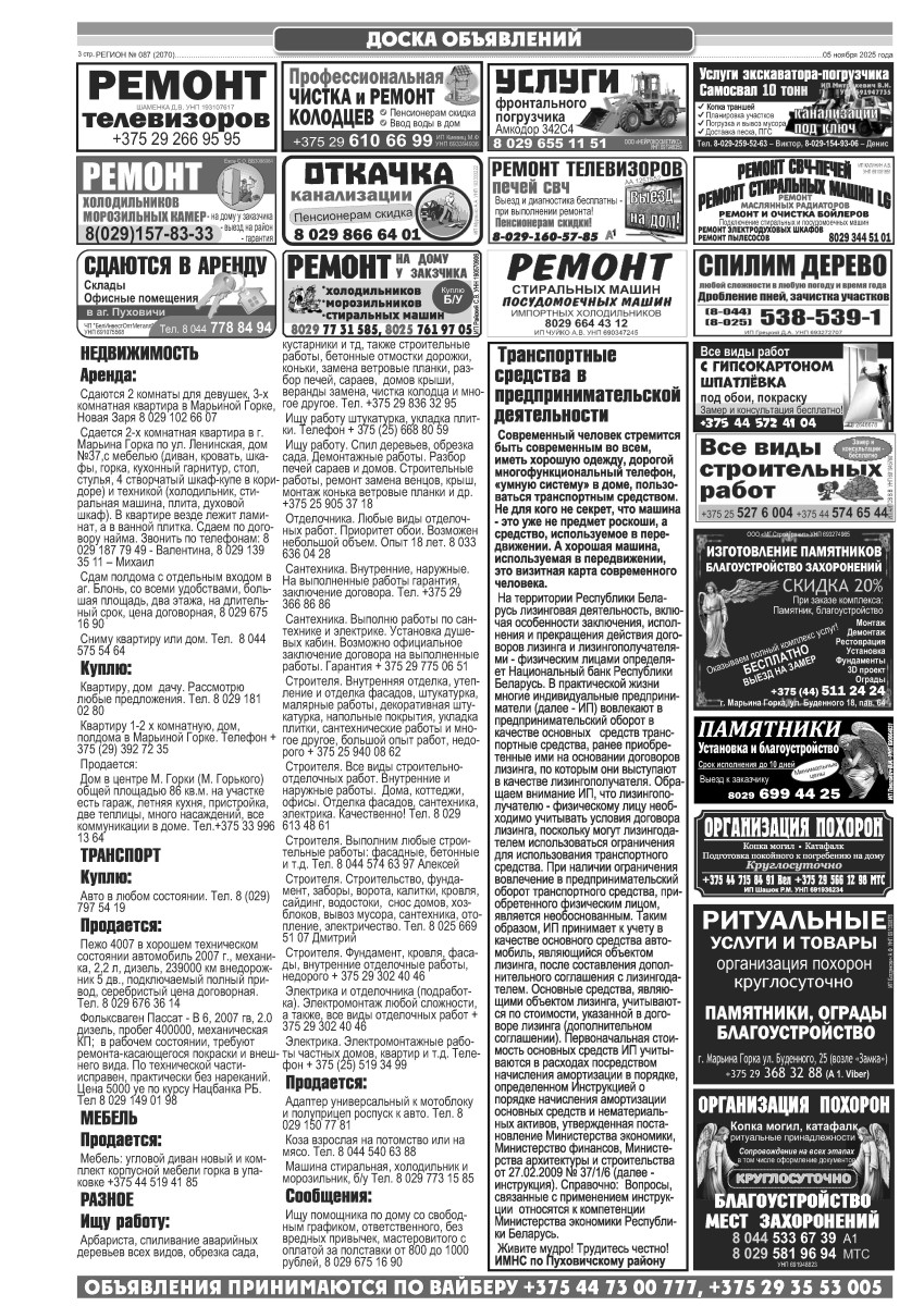 Газета "Регион" № 87 от 5 ноября 2025 года