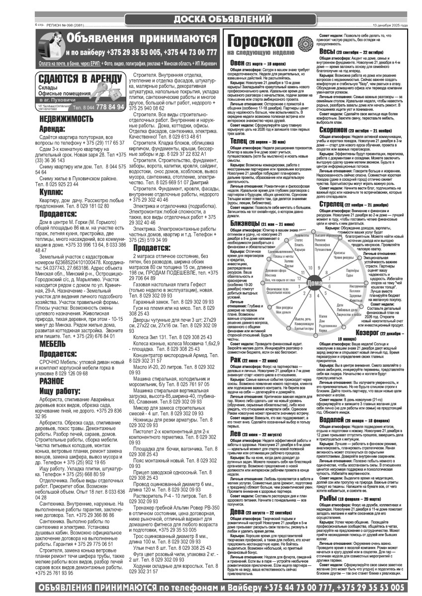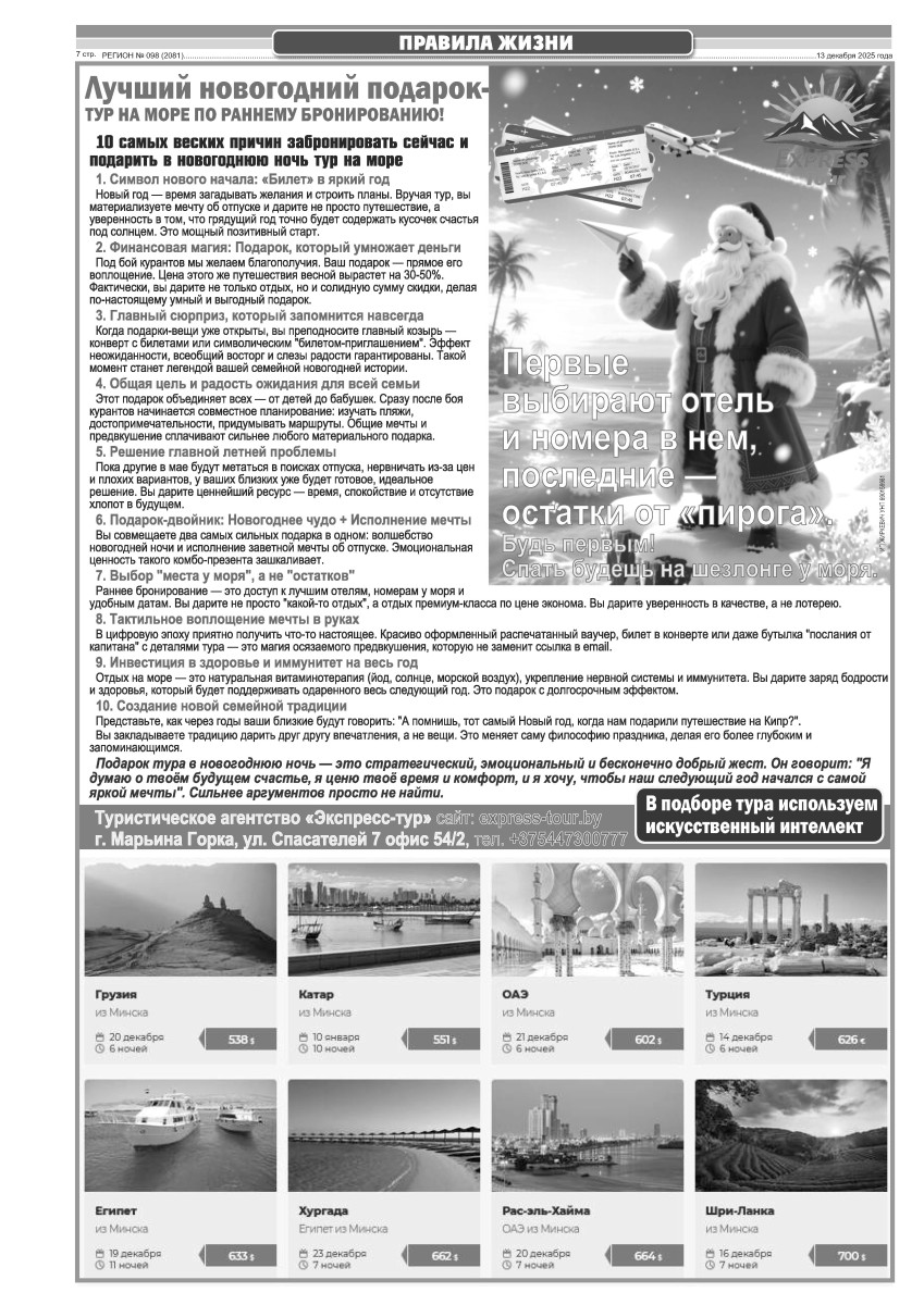 Газета "Регион" № 98 от 13 декабря 2025 года