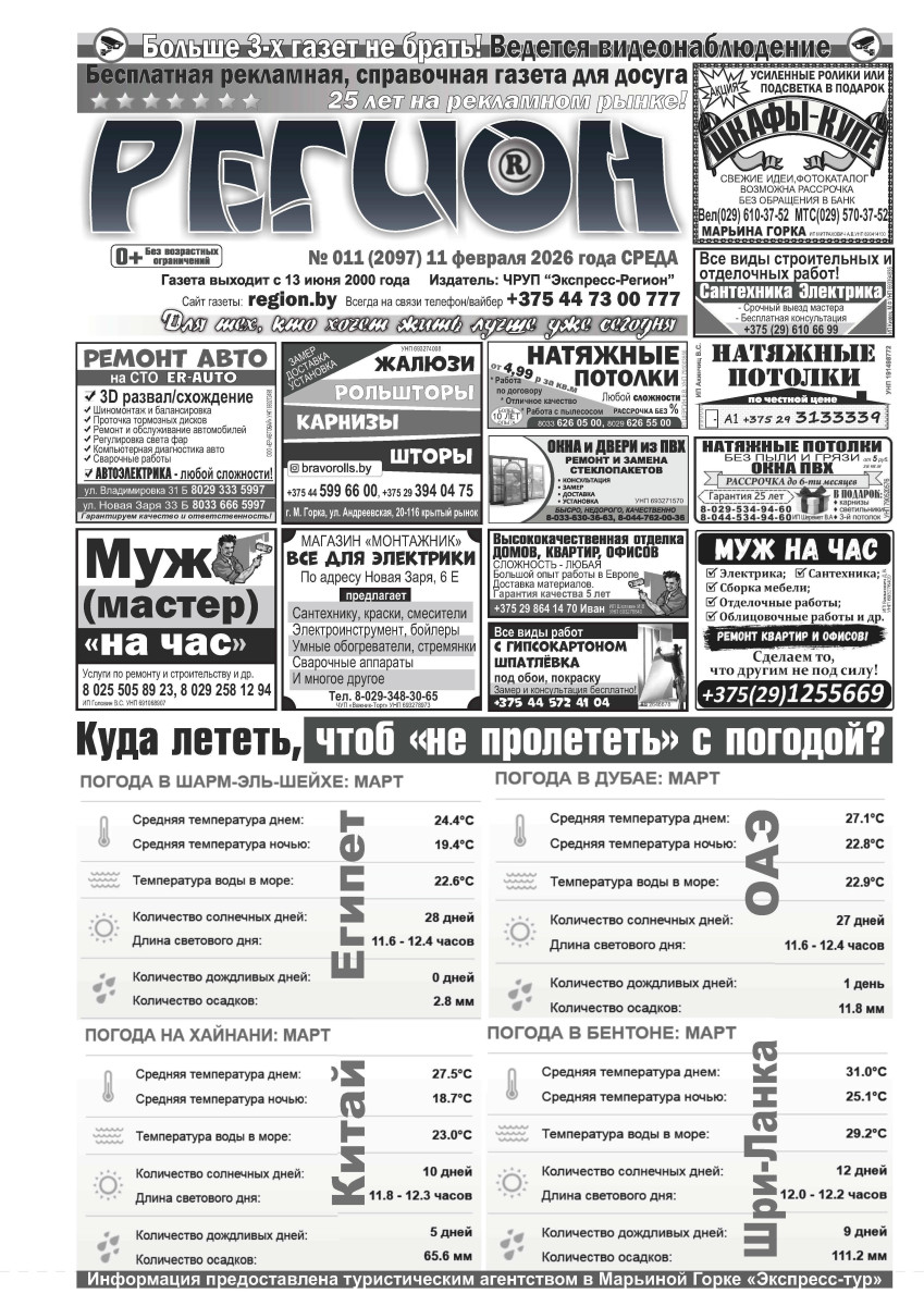 Газета "Регион" № 11 от 11 февраля 2026 года