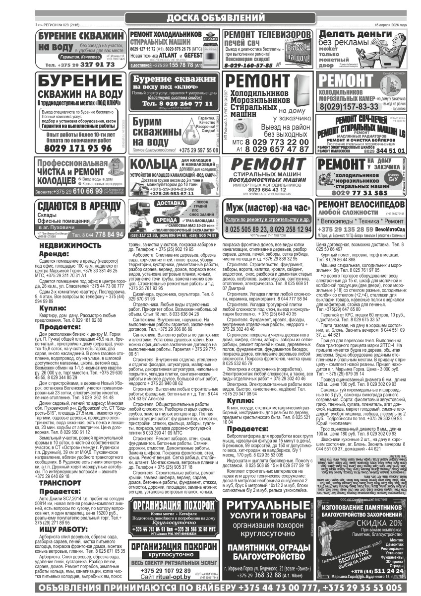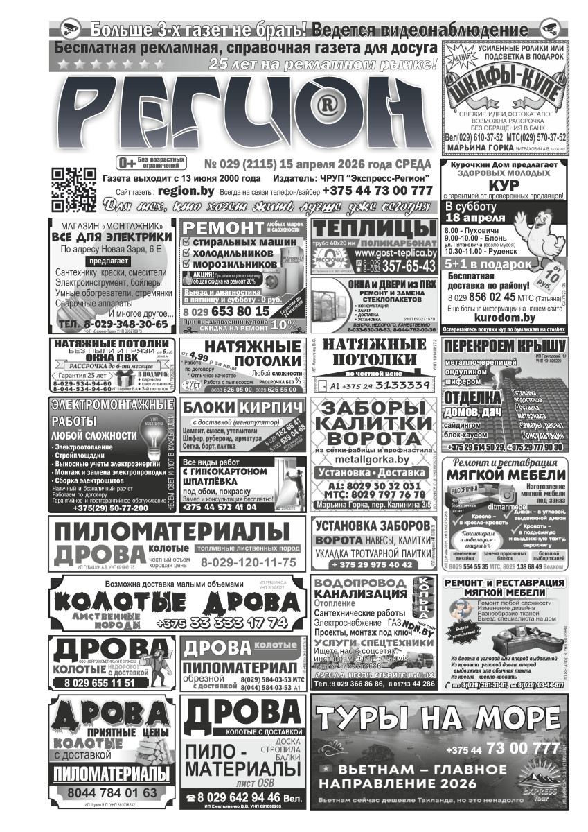 Газета "Регион" № 29 от 15 апреля 2026 года