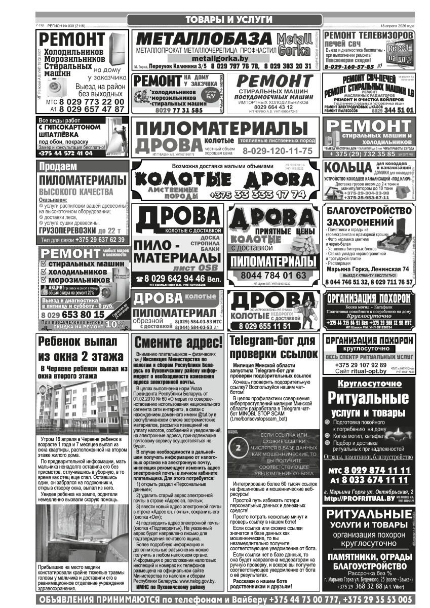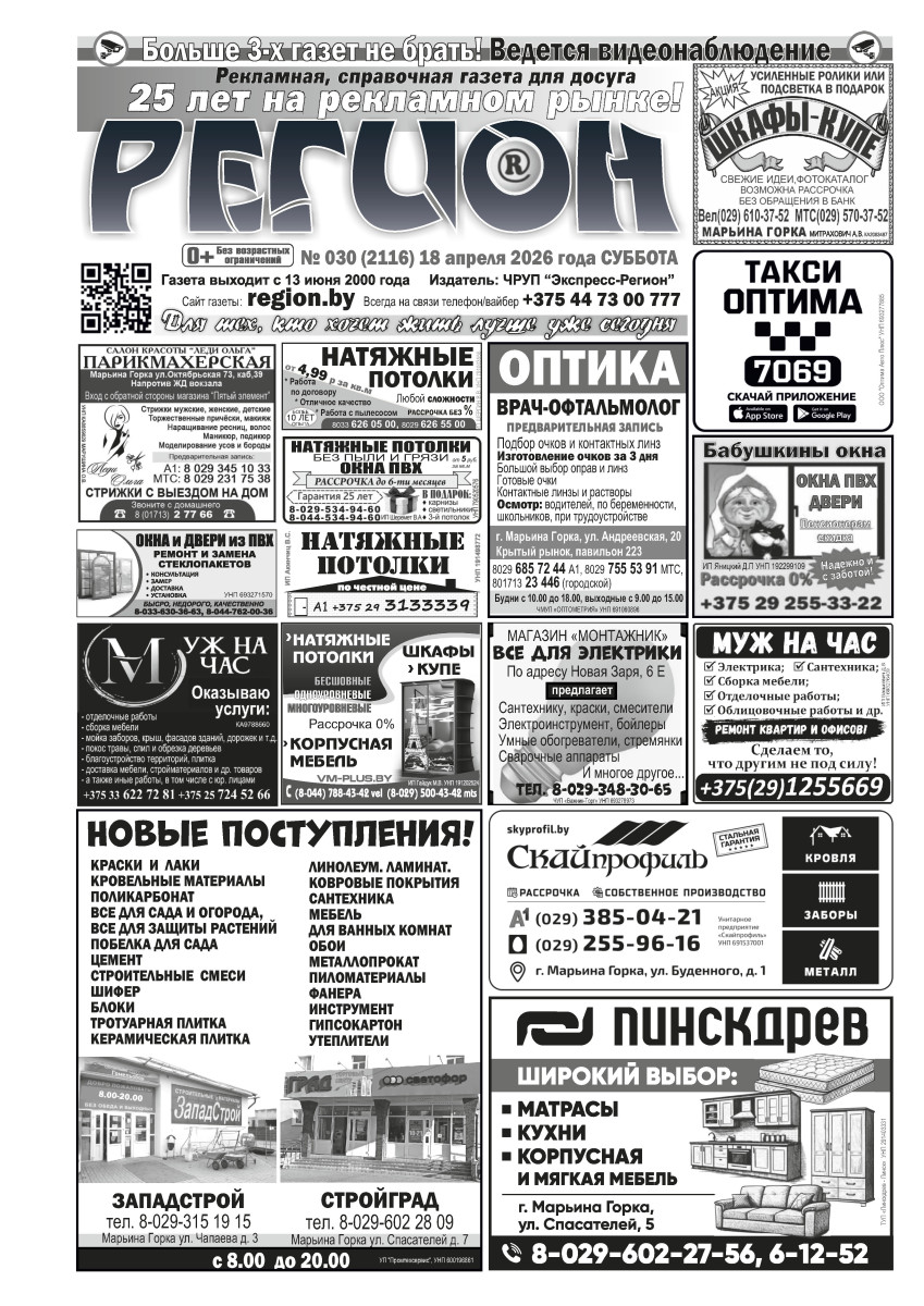 Газета "Регион" № 30 от 18 апреля 2026 года