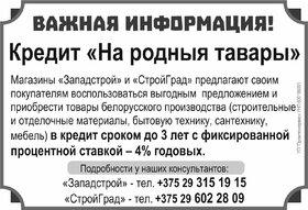 Важная информация кредит" На родныя тавары"