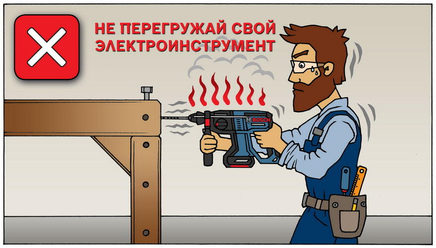 - Не оставляйте электроприборы включенными без присмотра. По окончании работы отключайте электроинструмент от сети.