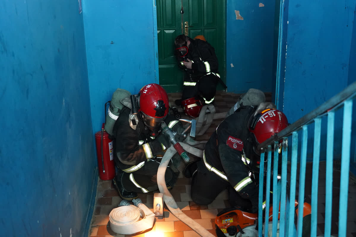 Отдельным этапом программы стало тактико-специальное занятие. Согласно тактическому замыслу, на третьем этаже общежития произошло загорание. Спасатели оперативно приступили к поиску и эвакуации людей: одного «пострадавшего» вывели в маске спасаемого через задымлённый коридор, второго спасли с помощью автолестницы через окно. Учебная ситуация была максимально приближена к реальной, что позволило продемонстрировать слаженность действий подразделений МЧС и показать проживающим, как проходит спасательная операция в условиях ограниченной видимости и времени.