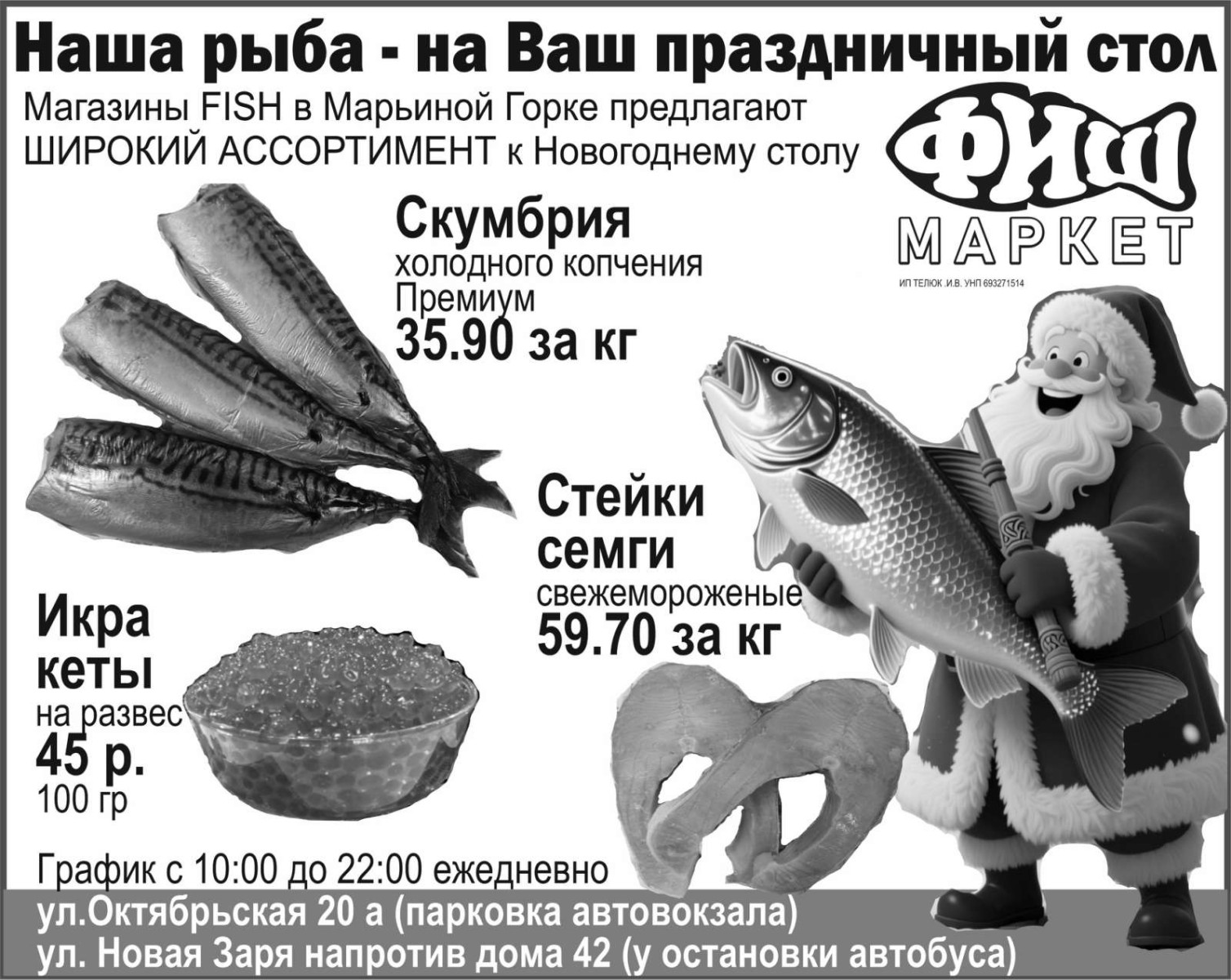 Ежедневно с 10:00 до 22:00 Наша рыба – на Ваш праздничный стол!