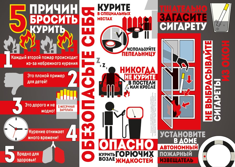 Зачастую, пожар начинается с малого: забытый окурок в пепельнице, брошенный мимо мусорного ведра или оставленный без присмотра тлеющий окурок на балконе. В считанные минуты небольшое возгорание может прерваться в масштабный пожара, угрожающий жизни и здоровью людей.
