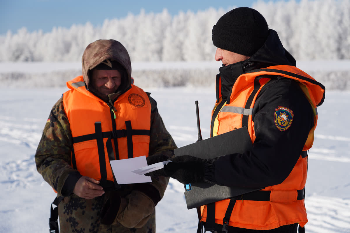Старший помощник начальника центра оперативного управления Денис Романович, объяснил отдыхающим, что лёд не прощает ошибок: «Мы никого не пугаем и не запрещаем рыбалку. Мы хотим, чтобы каждый человек вернулся домой. Лёд – штука очень коварная. Сейчас держит, а в двух шагах может быть промоина. Жилет помогает удержаться на поверхности и даёт нам время добраться до человека».