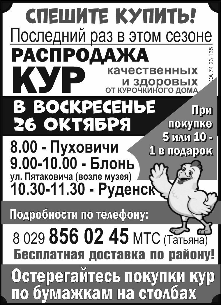 Не рискуйте! Остерегайтесь покупки кур у случайных продавцов по объявлениям на столбах.