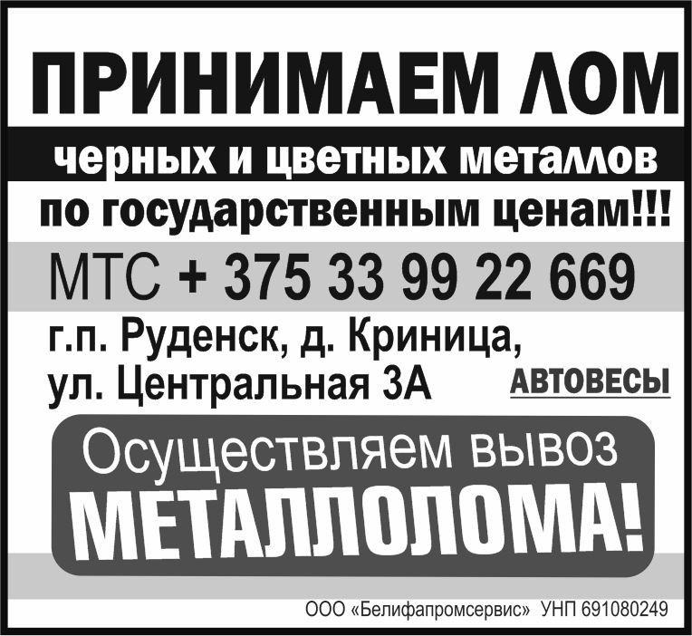 Компания «Белифапромсервис» осуществляет закупку лома черных и цветных металлов у населения и организаций. Мы гарантируем расчет по прозрачным государственным ценам.