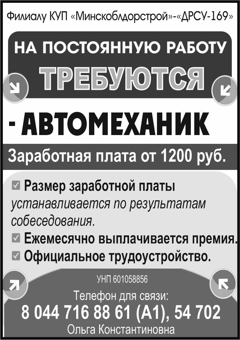 Филиалу КУП "Минскоблдорстрой"-"ДРСУ №169" на постоянную работу
