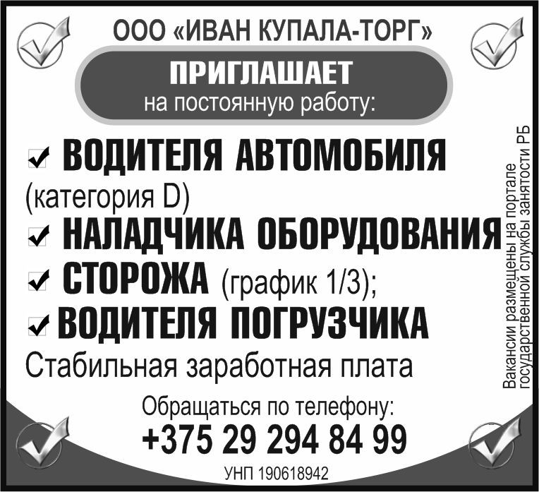 Приглашает на постоянную работу: