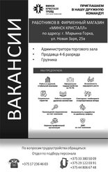 Работников в фирменный магазин "МИНСК КРИСТАЛЛ" по адресу: г. Марьина Горка, ул. Новая Заря, 25в Администратора торгового зала