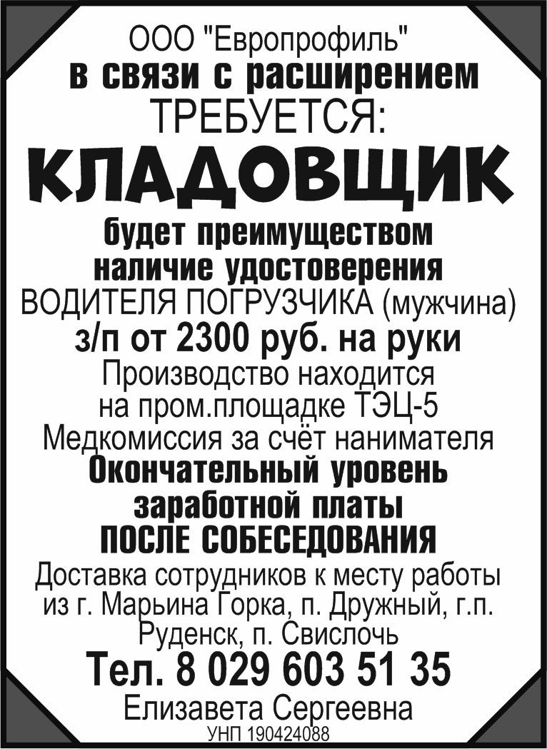Тел. 8 029 603 51 35 Елизавета Сергеевна