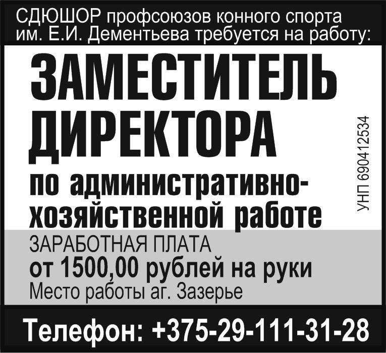СДIОШОР профсоюзов конного спорта им. Е.И. Дементьева требуется на работу: