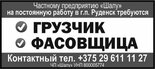 Частному предприятию «Шалу» на постоянную работу в г.п. Руденск требуется