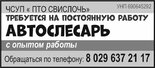 ЧСУП «ПТО Свислочь» требуется на работу